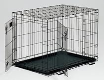 Whether starting with a new puppy or starting again with an adult dog, this folding double-door metal dog crate cuts housebreaking time in half and reduces behavioral problems. The exceptionally versatile unit features a divider panel that allows for adjusting the length of the living area. Keeping the living space small enough reduces the chance of the puppy eliminating in one end and sleeping in the other. Choose the size of crate that the dog will need when it reaches its full adult size, as the divider can be adjusted as the puppy grows. For easy placement in an automobile or in the corner of a room, the dog crate also comes equipped with convenient double doors, which allow both side and front access. Other highlights include safe and secure slide-bolt latches, a durable satin-black electro-coat finish, 1-1/2-by-5-7/8-inch mesh, rounded corners, and two plastic handles for carrying. The unit easily sets up and folds down to a portable size for suitcase-style carrying, and an ABS-composite plastic pan for easy clean up comes included. The dog crate measures 36 by 24 by 27 inches and carries a one-year limited warranty.