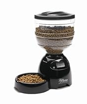 Great for cats and dogs, this fully automatic pet feeder features a tough plastic base that holds a food reservoir for food "on demand." The electronic pet feeder's simple, programmable electronics prompt the feeder to dispense portions from 1/4 to 3 cups at three selected times per day. The unit can be set to meet scheduled feeding times and amounts when caretakers are away, but it is not meant to replace human care--please be sure someone still visits the pet daily. The unit's hopper holds 10 pounds of food and accommodates a full range of dry food sizes, shapes, and types. The feeding bowl is removable for easy cleaning. Required batteries, which are not included, sustain a long battery life of six months. One-year limited warranty.Product Details